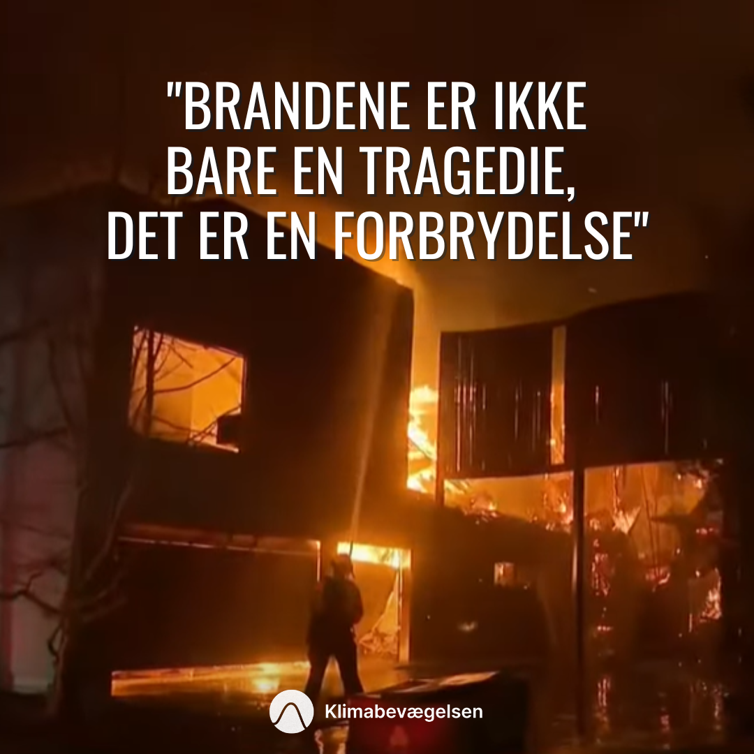 På sociale medier kan man se ufattelige videoer og billeder fra brandene, med teksten "Brought to you by Exxon" og andre olieselskaber. For det her er en forsættelig forbrydelse.