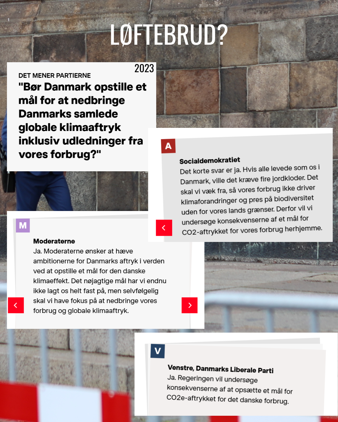 I 2023 var alle tre regeringspartier for et klimamål på vores forbrugsudledninger. Nu afviser de blankt, med argumenterne fra en ensidig notits.