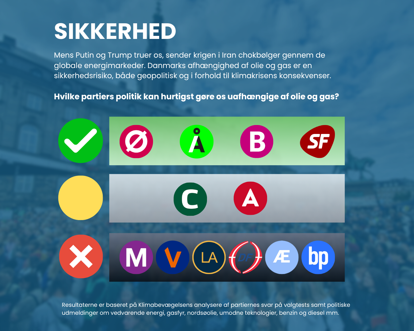 Her er Klimabevægelsens bud på, hvilke partiers politik der hurtigst vil kunne gøre os uafhængige af olie og gas.
